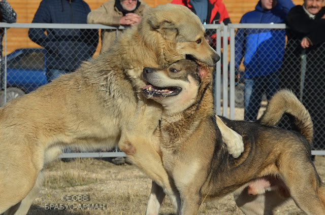 СКВ БРАБУС (отец – Рэмбо, вл. Азимов Якуб, мать – Джана, вл. Обухов Виктор), вес 73 кг, возраст 5 лет 1 мес. (дата рождения – 9.2010), количество поединков – 5, в т.ч. побед – 1, ничьих – 2, поражений – 2, вл. Шишман Игорь (Новоалексеевка, Херсонская обл.)
