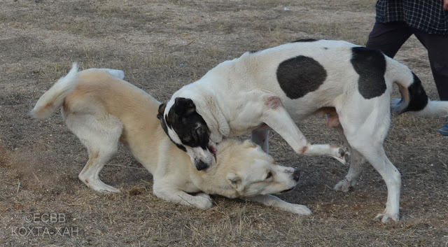 СКВ АБРАЙ (отец – Гордон, вл. Козавчинский Николай, мать – Аза, вл. Калмыков Валерий), вес 63,5 кг, возраст 3 года 4 месяца (дата рождения – 3.05.2012), количество поединков – 4, в т.ч. побед – 1, ничьих – 1, поражений – 2, вл. Калмыков Валерий (Раденск, Херсонская обл.)