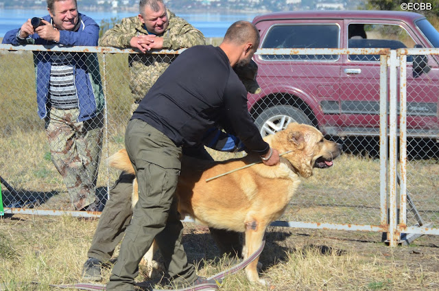 СКВ БАСХАН (отец – ДЖИГИТ, вл. Оноприенко Анатолий, мать – БЕЛКА, вл. Шишман Игорь), вес 68 кг, возраст 5 лет 6 мес. (дата рождения – 03.2013), количество поединков – 2, в т.ч. побед – 0, ничьих – 0, поражений – 2,
