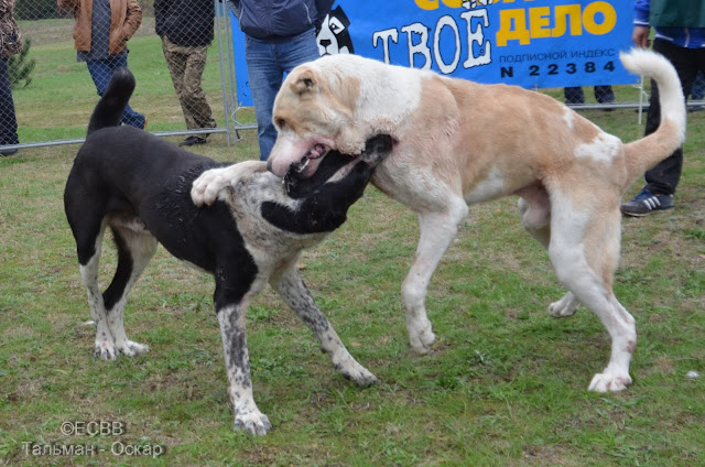 СКВ МАЛЫШ (отец – Саур, вл. Цукуров, мать – Эльза, вл. Метельский А.), вес 82 кг, возраст 3 года 11 мес. (дата рождения – 26.11.2012), количество поединков – 6, в т.ч. побед – 2, ничьих – 2, поражений – 2, вл. Метельский Александр (Каховка, Херсонская область)