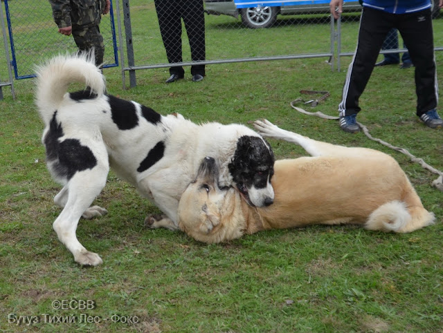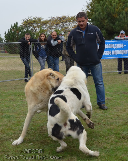 САО БУТУЗ ТИХИЙ ЛЕС (отец – Тор, вл. Лабенок П., мать – Зара, вл. Лабенок П.), вес 68 кг, возраст 4 года 7 месяцев (дата рожд. – 28.02.2012), количество поединков – 3, побед – 1, ничьих – 1, поражений – 1, Титулы: «Юниор чемпион чемпионата юниоров ХIІ официального открытого чемпионата ЕСВВ по тестингу волкодавов «ВОЛКОДАВ УКРАИНЫ-2015» в средней весовой категории» (EUWO)