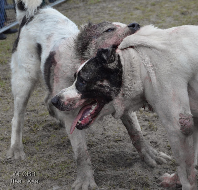СКВ ХАН (отец – Есаул, вл. Могильный Николай, мать – Спарта, вл. Могильный Николай), вес 68 кг, возраст 3 год 8 месяцев (дата рождения – 29.01.2013), количество поединков – 6, в т.ч. побед – 3, ничьих – 1, поражений – 2,