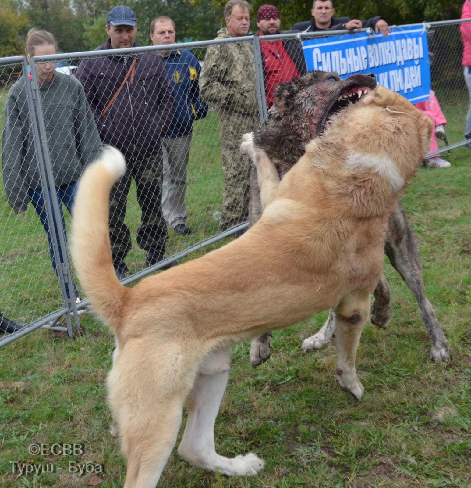 СКВ БРАБУС (отец – Рэмбо, вл. Азимов Якуб, мать – Джана, вл. Обухов Виктор), вес 73 кг, возраст 5 лет 1 мес. (дата рождения – 9.2010), количество поединков – 8, в т.ч. побед – 3, ничьих – 2, поражений – 3, Титулы: «Вице-чемпион ХIІІ официального открытого чемпионата ЕСВВ по тестингу волкодавов «ВОЛКОДАВ УКРАИНЫ-2016» в тяжелой весовой категории» (EUWO)