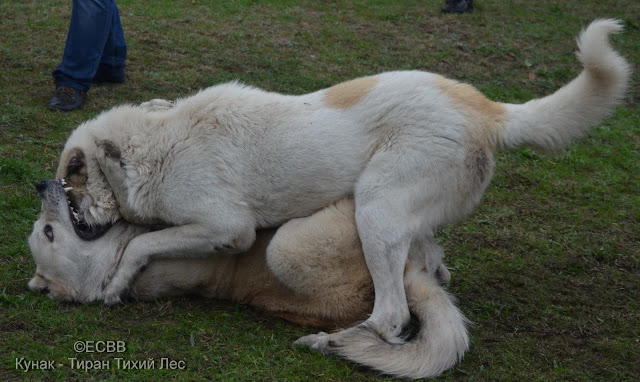 СКВ ТАЙСОН (отец – Батыр, вл. Прусенко Игорь, мать – Байра, вл. Прусенко Игорь), вес 67 кг, возраст 4 года (дата рождения – 19.09.2012), количество поединков – 6, в т.ч. побед – 3, ничьих – 3, поражений – 0, Титулы: «Вице-чемпион ХIІІ официального открытого чемпионата ЕСВВ по тестингу волкодавов «ВОЛКОДАВ УКРАИНЫ-2016» в средней весовой категории» (EUWO)