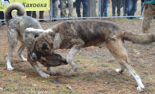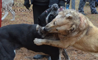 СКВ БРАБУС (отец – Рэмбо, вл. Азимов Якуб, мать – Джана, вл. Обухов Виктор), вес 74 кг, возраст 5 лет 3 мес. (дата рождения – 9.2010), количество поединков – 8, в т.ч. побед – 3, ничьих – 2, поражений – 3,